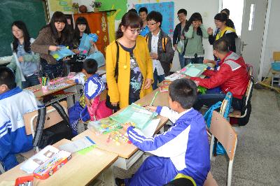同学们在校领导的指引下,探访了学校的一些聋哑儿童班级,与小朋友们做了很多游戏,用手语和他们交流,并为他们佩戴了带有笑脸的胸徽。一位聋哑儿童用手语表达出他很喜欢各位志愿者带来的礼物,希望以后他们还来,孩子们质朴的笑脸让很多大学生为之动容。“很开心能看到大学生们来到这里,感谢有那么多人关心着这里的孩子们,给予孩子们这么多关爱,大学生是最有活力的团体,这个活动很有意义,希望类似的活动可以多些。”学校里的刘老师对志愿者们的到来表达了谢意。随后,校领导代表小朋友们将他们手工制作的爱心千纸鹤送给了行政学子,希望可以通过同学们转交给那些社会上的爱心人士。